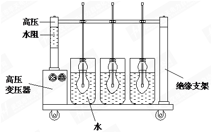 使用前先將水電阻內(nèi)注水,注滿水的水電阻安裝在移動托架上,再將電極桿支撐兩端插入絕緣撐桿和水電阻內(nèi)。