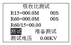 開機后直接按功能鍵“R60/15S”進入圖2,選擇電壓確認后進入“吸收比測試”準備: