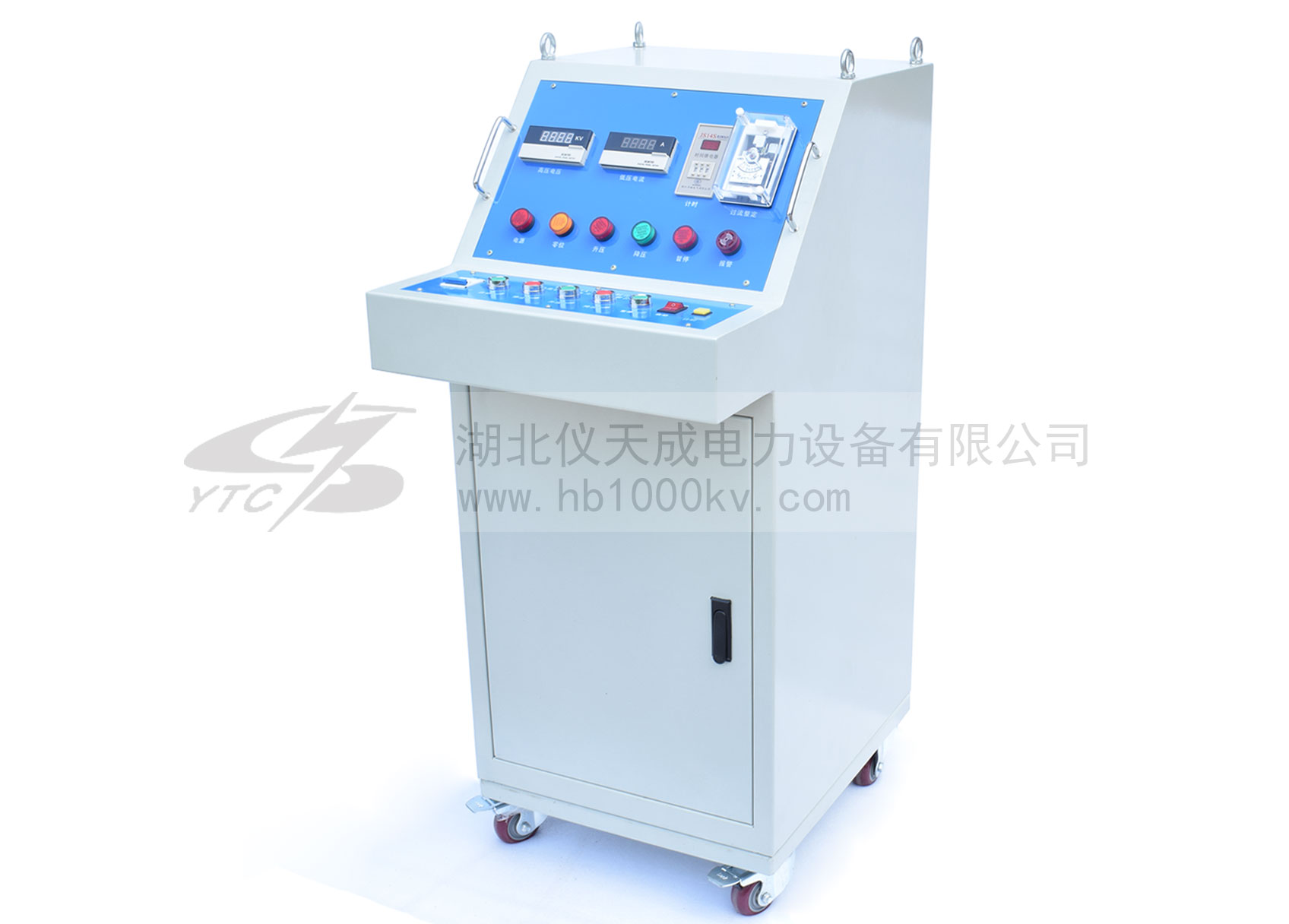 把電源輸入有過流自動脫扣及防止突發加壓的零位連鎖裝置的操作箱,經自耦調壓器調節電壓輸入YDQ充氣式試驗變壓器初級繞組,根據電磁感應原理,在次級(高壓)繞組按其與初級繞組匝數之比可獲得同等倍數的電壓幅值-工頻高壓。