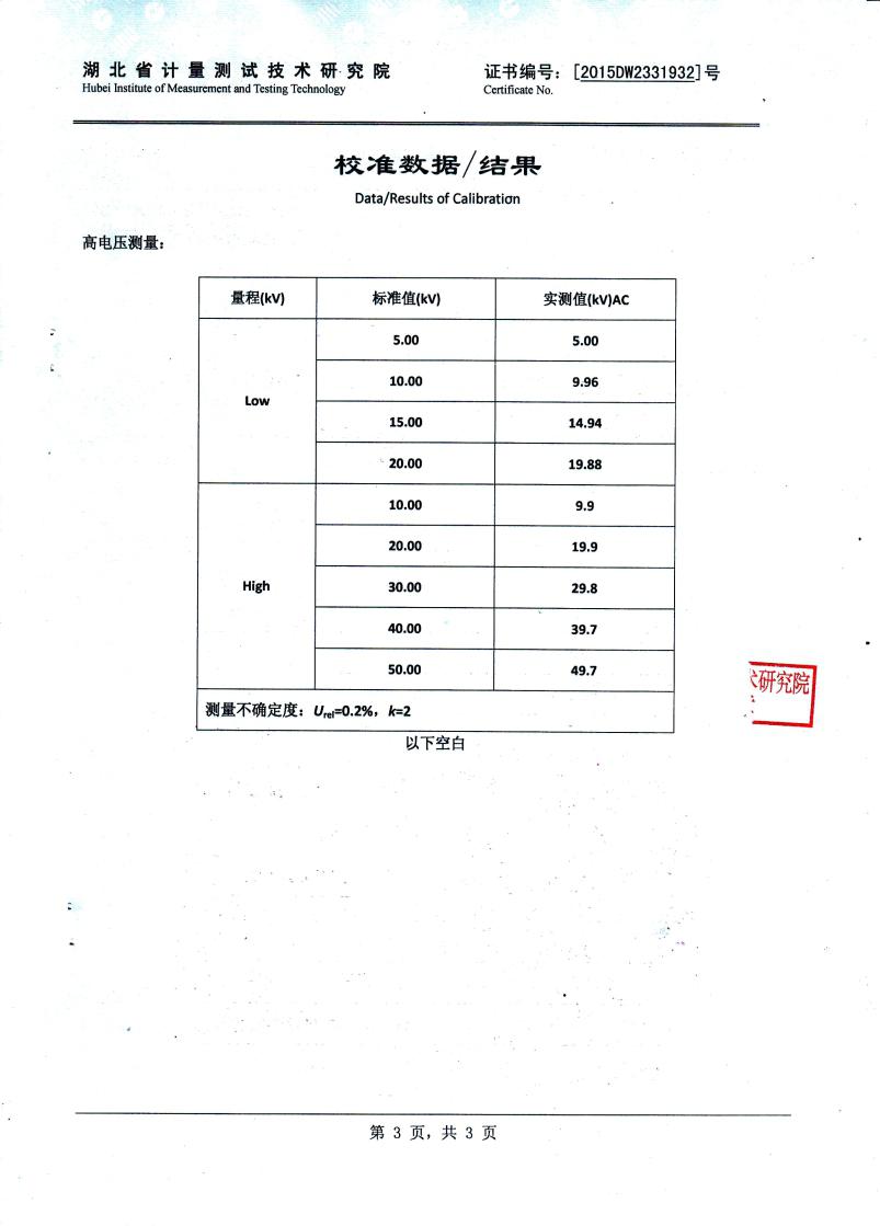 測量電壓范圍KV |