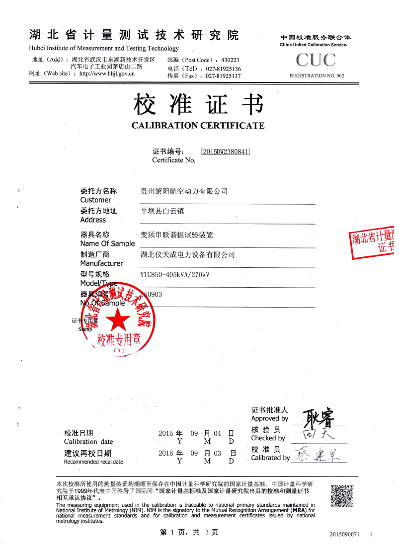 YTC850-810/270 30kW 30kVA 45kV/2A/9臺 300kV 110kV套管、GIS、支柱絕緣子、隔離開關