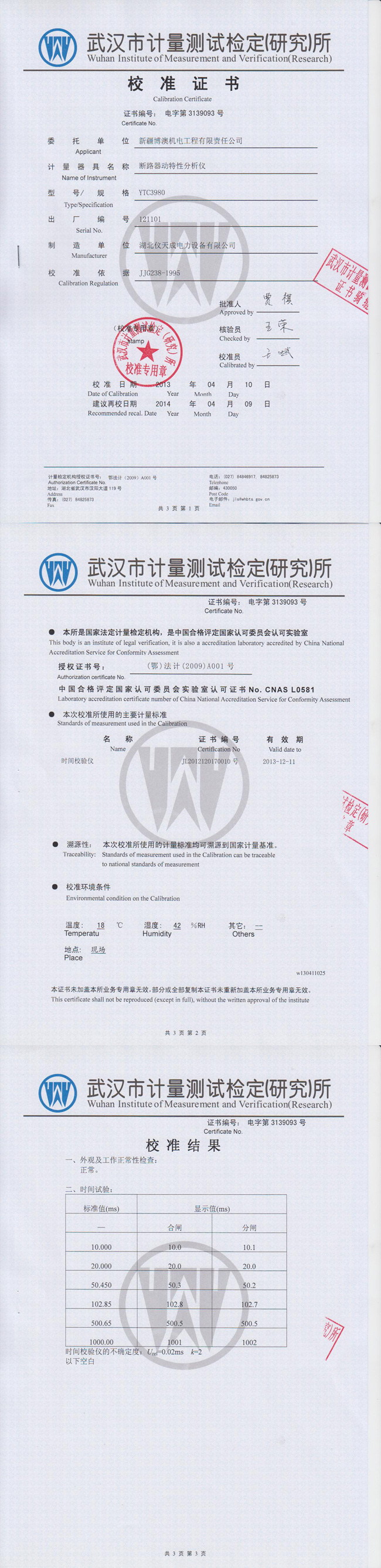 上一篇:YTC3970高壓開關動特性測試儀鑒定證書 下一篇:YTC5501-100回路電阻測試儀資質證書